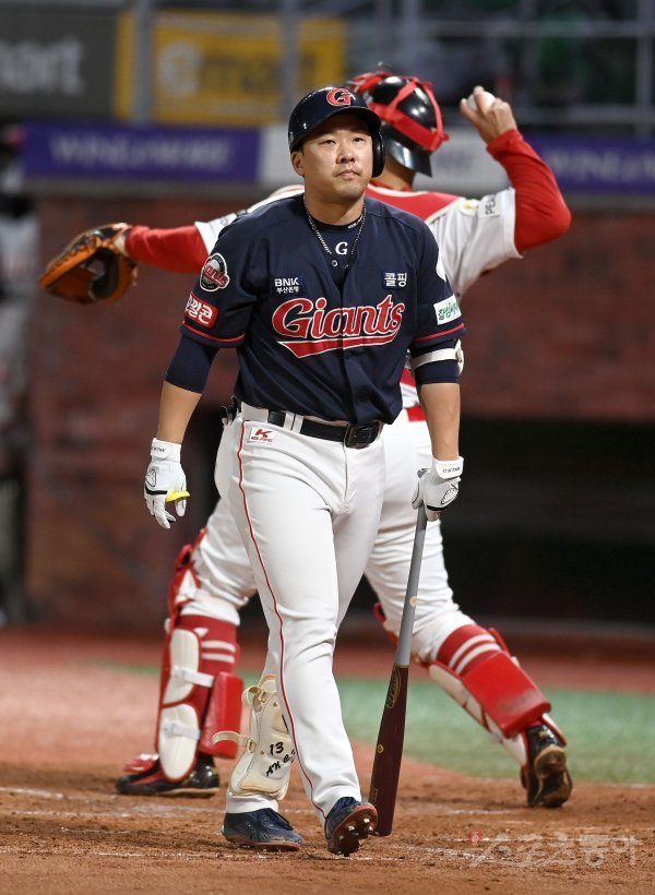 2회초 2사 만루 롯데 안치홍이 삼진 아웃되고 있다.