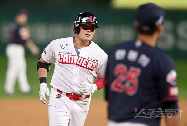 4회말 무사 1,2루 SSG 추신수가 다시 앞서가는 중월 스리런 홈런을 날린 후 그라운드를 돌고 있다.