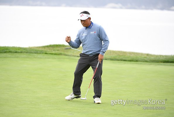 ‘코리안 탱크’ 최경주가 27일(한국시간) 한국인 최초로 PGA 챔피언스 투어 정상에 올랐다. 페블비치 골프 링크스에서 열린 퓨어 인슈어런스 챔피언십에서 우승을 확정한 뒤 주먹을 불끈 쥐고 포효하는 최경주. 사진=게티이미지코리아