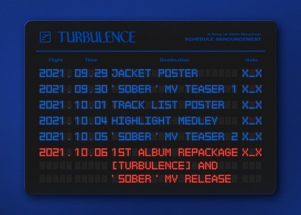 엔플라잉의 소속사 FNC엔터테인먼트는 지난 28일 공식 SNS를 통해 정규 1집 리패키지 앨범 ‘TURBULENCE’의 플랜 포스터를 공개했다.