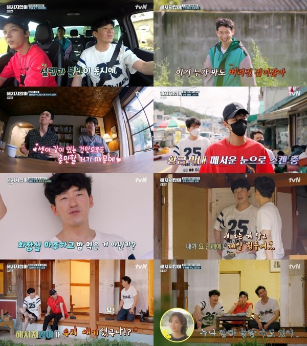 곧이어 탁트인 남해 바다를 뒤로하고 고요한 시골마을에 도착한 이들은 기대했던 낭만 가득한 아지트와는 달리 압도적인 비주얼을 자랑하는 흉흉한 폐가에 할 말을 잃고 충격에 빠졌다. 이는 “셋이 같이 한다면 어디든 상관 없다”고 말한 세 사람을 위해 제작진이 준비한 선물로, 휴가 시작부터 흥미진진한 반전을 안겼다.