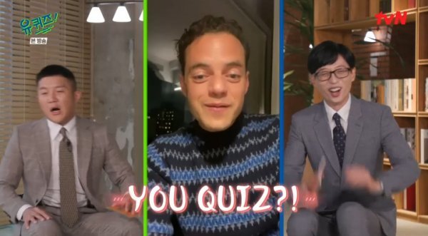 라미 말렉은 29일 방송된 ‘유 퀴즈 온 더 블럭’에 영상으로 출연해 “헬로 자기님~”이라고 인사했다. 그는 “전작 ‘보헤미안 랩소디’가 한국에서 얼마나 큰 사랑을 받았는지 안다. 정말 감사하다. ‘007’도 좋아해주실 거라 기대한다. 내 모든 사랑을 담아 감사를 전한다”면서 “유퀴즈~?”라고 전했다.