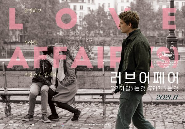 73회 칸국제영화제 공식 선정작, 카이에뒤시네마 선정 2020 최고의 영화 TOP10, 26회 뤼미에르영화제 작품상, 46회 세자르영화제 13개 부문 최다 후보, 여우조연상 등 해외 영화제 및 평단과 매체에서 높은 평가를 받고 있는 '러브 어페어'는 국내의 다양한 영화제 및 기획전에서 매진 행렬을 이어나가며 큰 화제를 불러 모았다. 이로써 올 하반기 개봉작 중 최고의 기대작으로 등극한 '러브 어페어'는 11월 국내 개봉을 확정 지은 가운데 1차 포스터 3종을 공개했다.