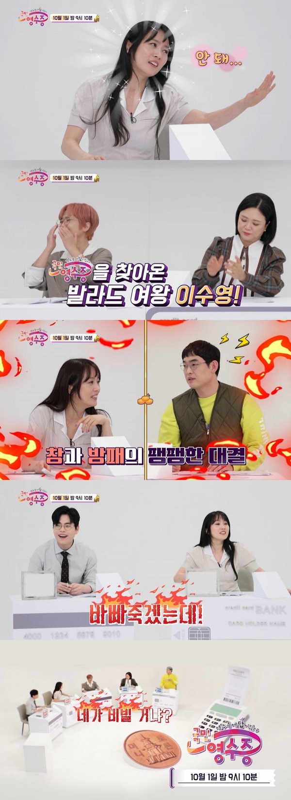 1일 방송되는 KBS Joy 예능 프로그램 \'국민 영수증\' 4회에서는 가수 이수영의 영수증을 분석하는 3MC 송은이, 김숙, 박영진 모습이 그려진다.