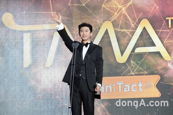 임영웅이 2일 오후 온라인으로 진행된 ‘2021 TMA’ 시상식에서 수상 소감을 밝히고 있다.
