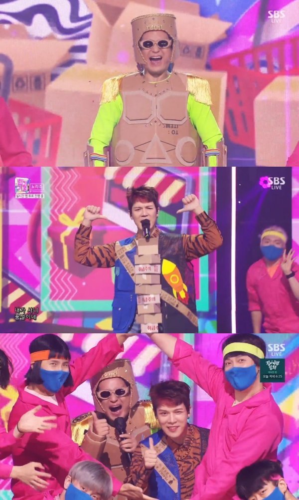노라조는 3일 오후 방송된 SBS ‘인기가요’에 출연해 새 디지털 싱글 ‘고민은 배송만 늦출 뿐’ 무대를 선보였다.