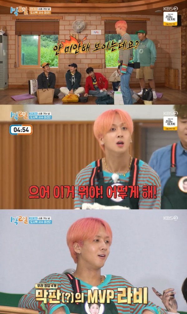 이날 멤버들은 직접 도시락을 싸고 여행길에 나섰다. 라비가 도시락으로 닭가슴살 셰이크를 준비해오자 멤버들이 진저리를 쳐 큰 웃음을 안겼다.