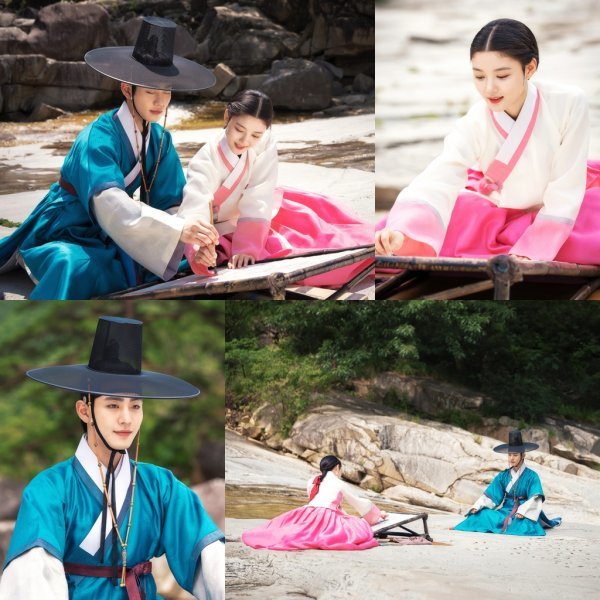 사진 속 홍천기는 하람의 초상화를 그리고 있다. 하람의 얼굴을 눈에 담으며 그려가는 홍천기의 표정에는 연신 미소가 떠나지 않는다. 이어 하람의 옆으로 자리를 옮긴 홍천기와 두 사람이 함께 초상화를 그리는 모습이 포착됐다. 붓대에 손을 포갠 채 같이 그림을 완성해가는 두 사람의 모습은 아름다운 계곡 풍경과 함께 눈부시게 어우러진다.