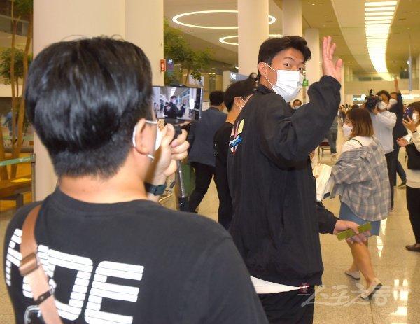 시리아와 2022 국제축구연맹(FIFA) 카타르 월드컵 아시아 지역 최종예선 A조 3차전을 앞두고 축구대표팀 황의조(보르도)가 5일 인천국제공항을 통해 입국하고 있다.