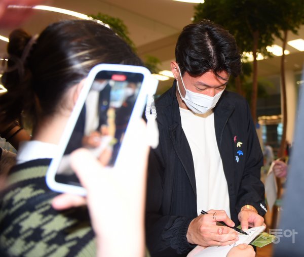 시리아와 2022 국제축구연맹(FIFA) 카타르 월드컵 아시아 지역 최종예선 A조 3차전을 앞두고 축구대표팀 황의조(보르도)가 5일 인천국제공항을 통해 입국하고 있다.