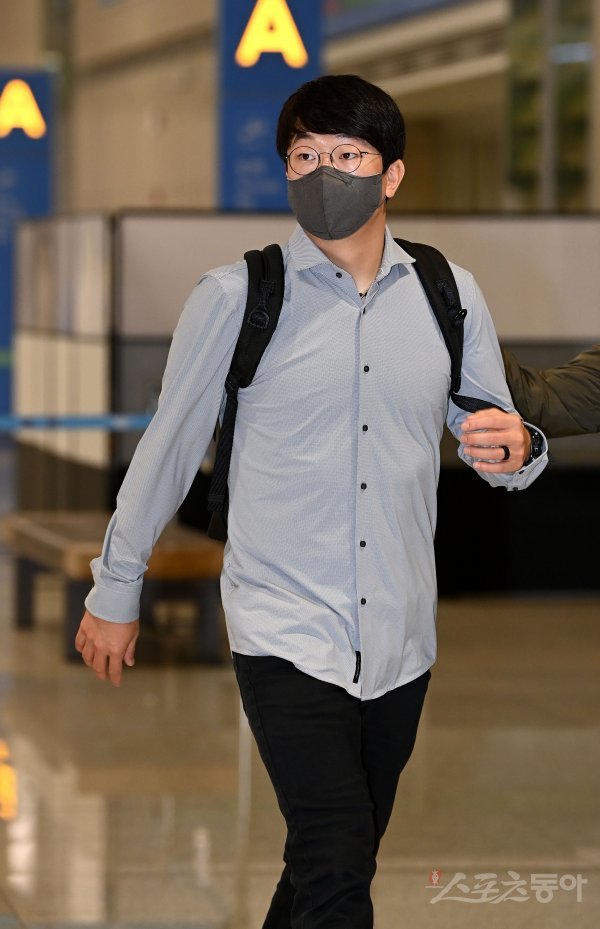 미국 메이저리그에 도전했던 양현종이 5일 인천국제공항을 통해 입국하고 있다.