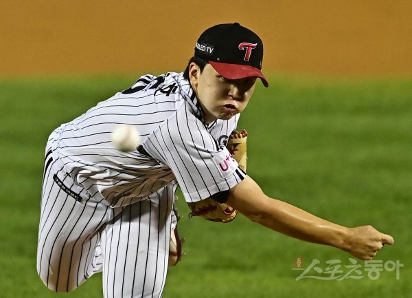 5일 서울 잠실야구장에서 열린 ‘2021 신한은행 SOL KBO리그’에서 LG 트윈스와 SSG 랜더스의 경기에서 선발 투수로 마운드에 오른 LG 이민호가 역투하고 있다.