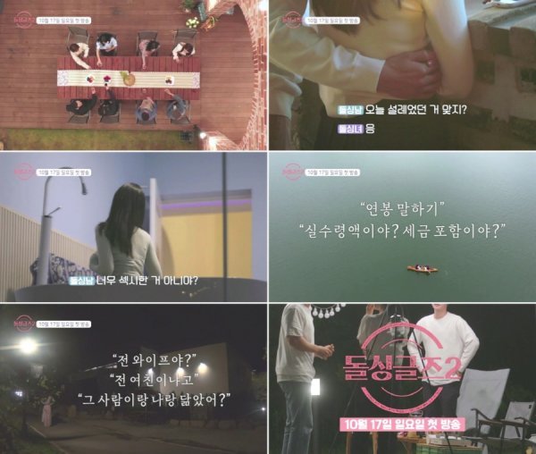 더욱 수위 높은 격정적인 대화도 이어진다. “연봉 말하기”라는 한 돌싱녀의 제안에 상대 돌싱남이 “실수령액이야, 세금 포함이야?”라며 자신감을 드러내는가 하면, 또 다른 돌싱녀는 관심 있는 돌싱남에게 “전 와이프야? 전 여친이냐고”라고 추궁한 직후 “그 사람이랑 나랑 닮았어?”라며 돌직구 질문을 던진다. 마지막으로 잔뜩 흥분한 돌싱녀의 말다툼 현장이 포착된 후, 티저가 극적으로 마무리된다.
