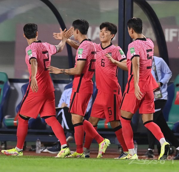한국 축구대표팀이 7일 안산 와 스타디움에서 시리아와 2022 국제축구연맹(FIFA) 카타르 월드컵 아시아 지역 최종 예선 3차전을 가졌다. 한국 황인범이 후반 선제골을 성공시킨 후 기뻐하고 있다. 안산 | 김종원 기자 won@donga.com