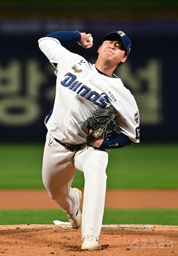 8일 창원NC파크에서 열린 ‘2021 신한은행 SOL KBO리그’에서 NC 다이노스와 삼성 라이온즈의 경기에서 선발 투수로 마운드에 오른 NC 신민혁이 역투하고 있다.