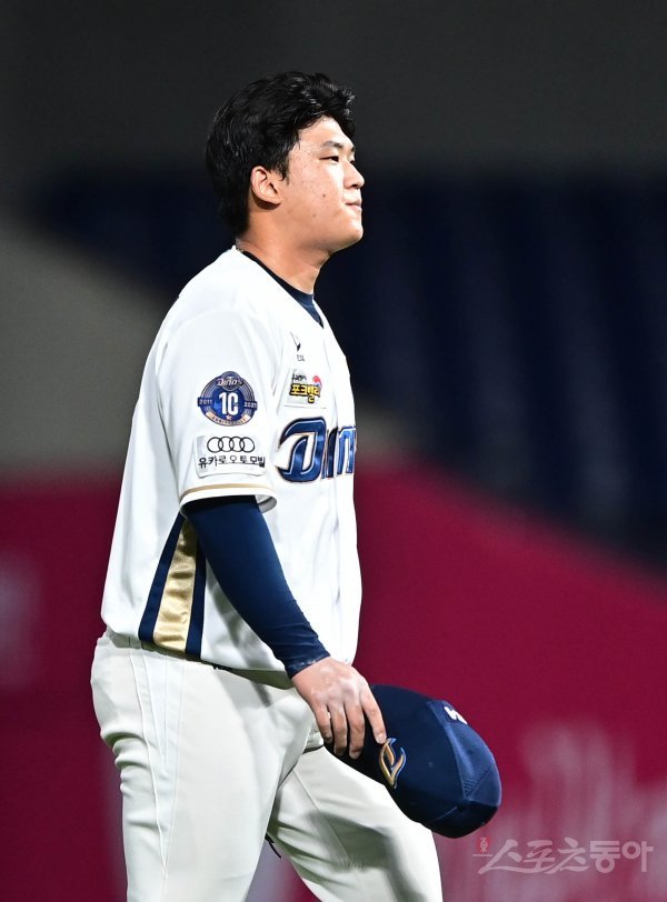 8일 창원NC파크에서 열린 ‘2021 신한은행 SOL KBO리그’에서 NC 다이노스와 삼성 라이온즈의 경기에서 3회초 2사 삼성에 2루타를 허용한 NC 신민혁이 아쉬워하고 있다.