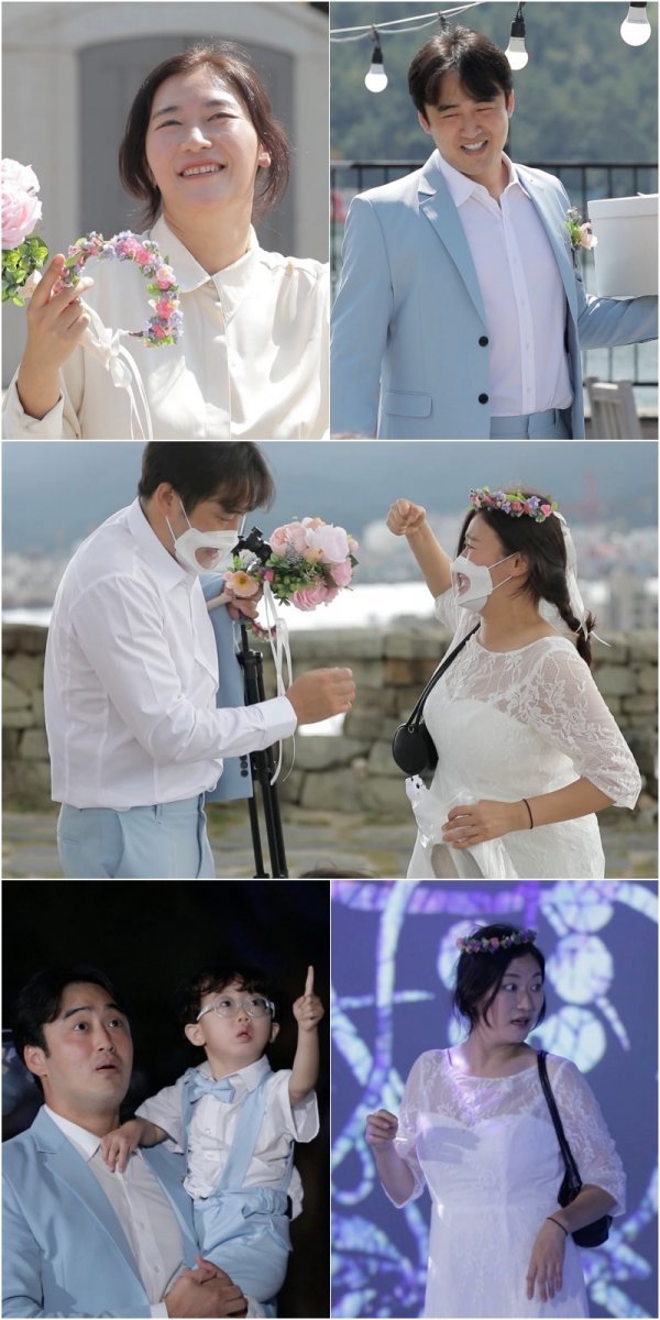 이어 턱시도로 갈아입은 정성윤은 모아와 함께 직접 만든 화관과 하얀 웨딩드레스가 담긴 커다란 선물 상자를 들고 와 로맨틱한 리마인드 웨딩 여행을 예고했다.