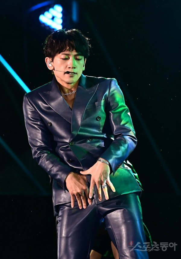 가수 비가 10일 서울 강남구 삼성동 코엑스에서 열린 ‘온택트 2021 강남페스티벌’ 영동대로 K-POP 콘서트에서 무대를 펼치고 있다.