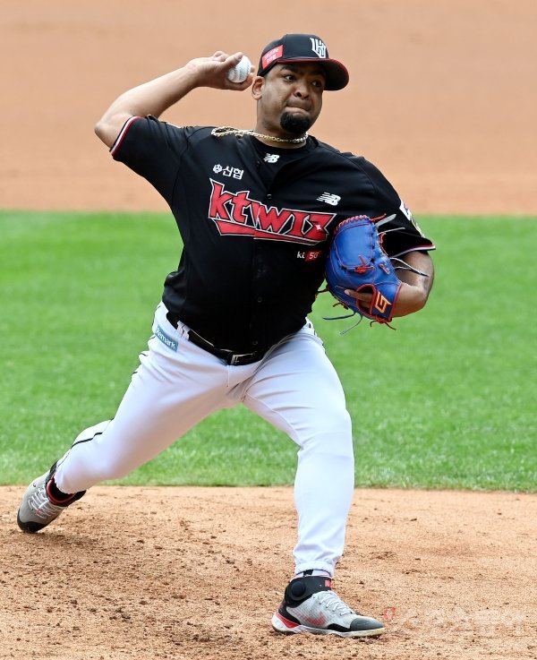 11일 서울 잠실야구장에서 ‘2021 신한은행 SOL KBO리그’ LG 트윈스와 kt 위즈의 경기가 열렸다. kt 선발투수 데스파이네가 힘차게 볼을 던지고 있다.