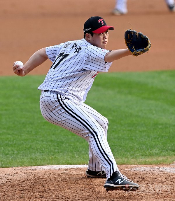 11일 서울 잠실야구장에서 ‘2021 신한은행 SOL KBO리그’ LG 트윈스와 kt 위즈의 경기가 열렸다. 6회초 무사에서 LG 함덕주가 구원 등판해 볼을 던지고 있다.