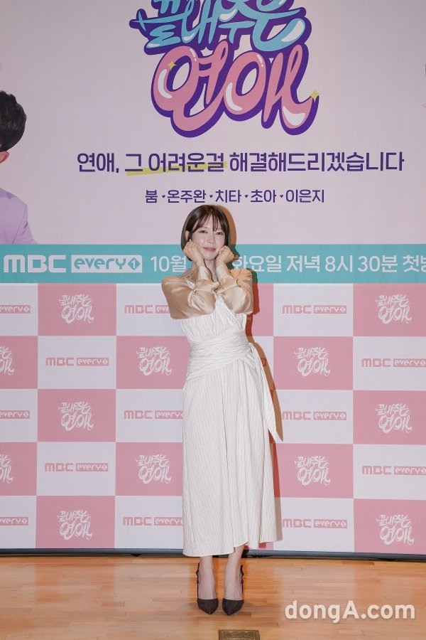 가수 초아가 12일 오후 2시 공개된 MBC에브리원 새 예능 ‘끝내주는 연애’ 제작발표회에 참석해 포즈를 취하고 있다.