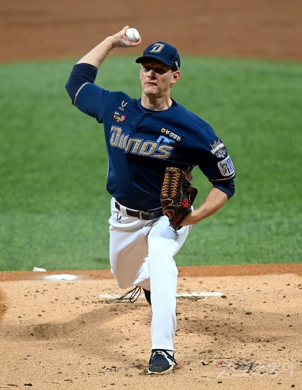 12일 서울 고척스카이돔에서 ‘2021 신한은행 SOL KBO리그’ 키움 히어로즈와 NC 다이노스의 경기가 열렸다. NC 선발투수 루친스키가 힘차게 볼을 던지고 있다.