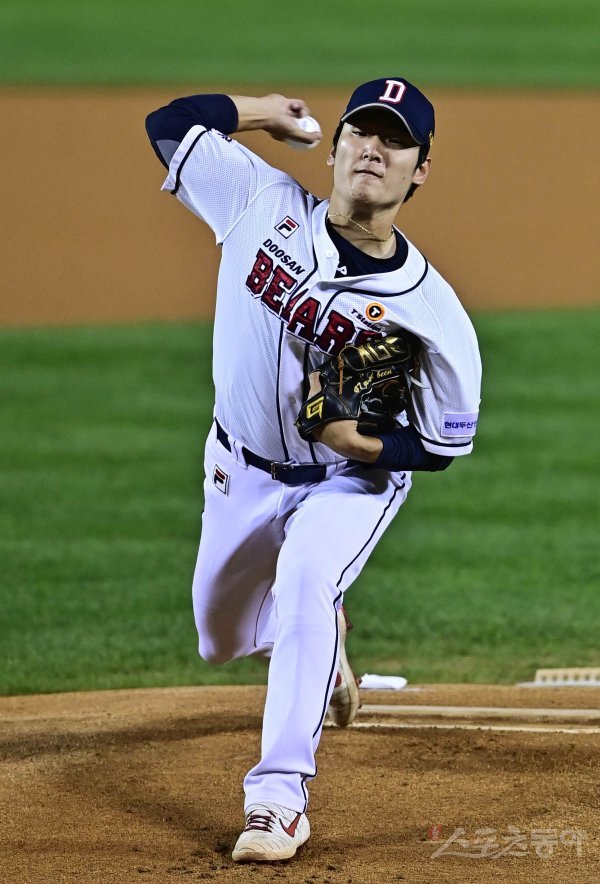 12일 서울 잠실야구장에서 열린 ‘2021 신한은행 SOL KBO리그’에서 두산 베어스와 KT 위즈의 경기에서 선발 투수로 마운드에 오른 두산 곽빈이 역투하고 있다.