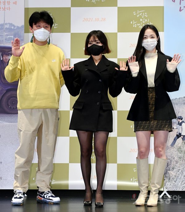13일 오후 서울 광진구 롯데시네마 건대입구에서 열린 영화 ‘당신은 믿지 않겠지만’ 언론배급 시사회 및 무대인사 행사에 참석한 김민재, 최희서, 김예은이 카메라를 향해 포즈를 취하고 있다.영화 ‘당신은 믿지 않겠지만’은 서로 다른 마음의 상처를 가진 일본과 한국의 가족이 서울에서 우연처럼 만나, 운명 같은 여정을 떠나는 영화다.