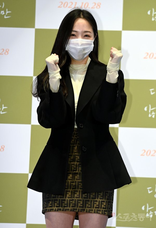 13일 오후 서울 광진구 롯데시네마 건대입구에서 열린 영화 ‘당신은 믿지 않겠지만’ 언론배급 시사회 및 무대인사 행사에 참석한 김예은이 카메라를 향해 포즈를 취하고 있다.영화 ‘당신은 믿지 않겠지만’은 서로 다른 마음의 상처를 가진 일본과 한국의 가족이 서울에서 우연처럼 만나, 운명 같은 여정을 떠나는 영화다.