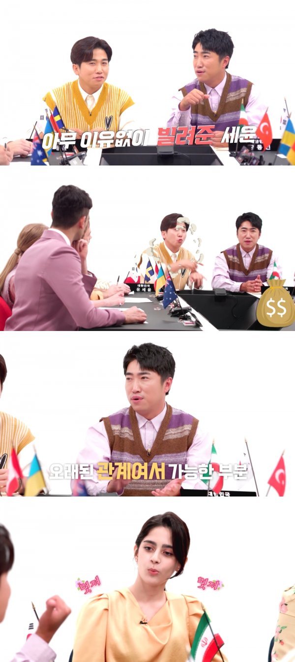'한쿡사람' 멤버들의 브이로그를 보다가 장동민은 유세윤을 가리며 실제 에피소드를 풀어놓는다. 장동민은 "유세윤에게 큰돈을 여러 번 빌린 적이 있다. 유세윤은 숨도 안 쉬고 단번에 '알았다'며 돈을 빌려줬다"고 말한다.