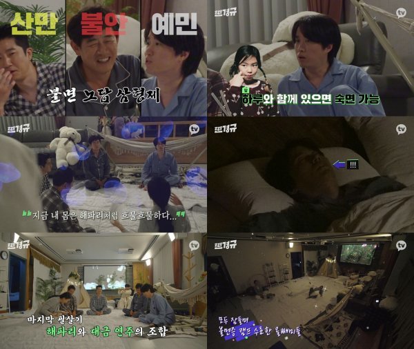 1차 수면 시도 만에 꿀잠에 빠진 수면 우등생 류승수와 수면 낙제생 이경규, 타블로, 투컷의 티키타카 케미도 폭소를 유발했다. 다양한 방법으로 잠에 도전했지만 거듭된 실패로 실망한 3인방 앞에 잠에서 깬 류승수가 등장한 것. 비몽사몽한 얼굴로 화장실에 가려고 일어났다는 류승수에게 이경규는 “자다가 화장실 가는 건 심각한 문제다. 전립선이 안 좋은 것”이라고 딴지를 걸며, 불면증이 아닌 또 다른 병 진단을 내려 모두를 웃게 했다. 더욱이 꿀잠 도전에 함께한 류승수가 또다시 5분 만에 잠들자, 타블로는 “다음에는 너무 많이 잠자는 사람 특집을 해서 미쓰라랑 같이 모셔야겠다”는 디스로 폭소를 전했다.