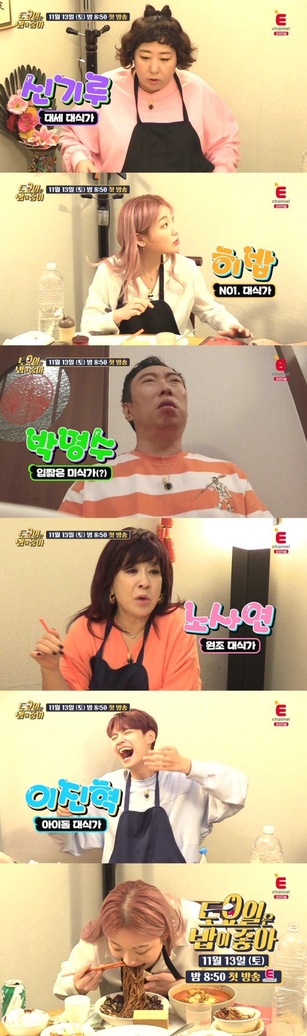 티캐스트 E채널에 따르면 하반기 기대작 '토요일은 밥이 좋아(이하 토밥좋아)'는 오는 11월 13일 밤 8시 50분 베일을 벗는다. 경쟁이 치열한 주말 예능 시장에 토요일 밤을 공략하며 강한 자신감을 내비쳤다.