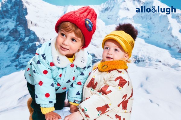 알로앤루의 ‘퍼니 도형 쌓기 웰론 점퍼’는 기하학적인 그래픽 패턴으로 알로앤루만의 유니크함을 담았다. 목 부분에는 복슬복슬한 퍼 재질의 카라를 달아 스타일리시함은 물론 따뜻함도 더했다. ‘퍼니 베어 웰론 점퍼’는 털모자를 쓴 갈색 곰이 인사하는 모습으로 사랑스럽고 따뜻한 분위기를 자아내며 목 부분에는 플리스 소재의 카라를 달아 보온을 강화했다.