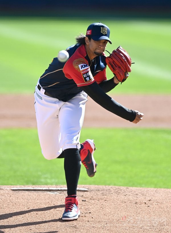 17일 수원KT위즈파크에서 ‘2021 신한은행 SOL KBO리그’ 한화 이글스와 KT 위즈 경기가 열렸다. 선발 투수로 등판한 KT 쿠에바스가 역투하고 있다.