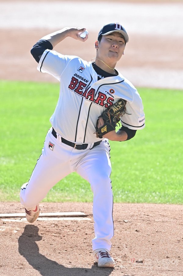 17일 서울 잠실야구장에서 열린 ‘2021 신한은행 SOL KBO리그’에서 두산 베어스와 KIA 타이거즈의 경기에서 선발 투수로 마운드에 오른 두산 곽빈이 역투하고 있다.