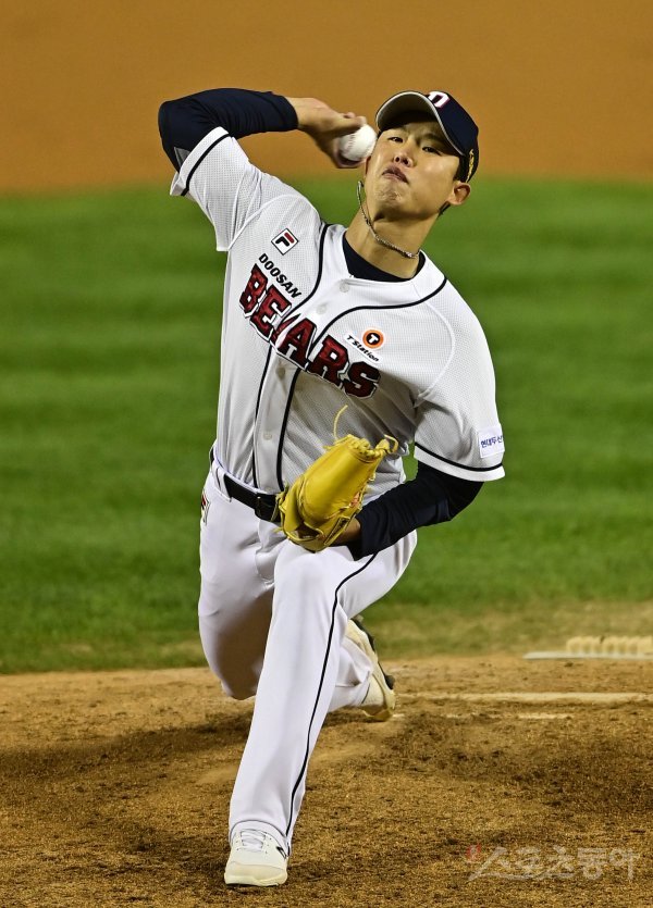 17일 서울 잠실야구장에서 열린 ‘2021 신한은행 SOL KBO리그’에서 두산 베어스와 KIA 타이거즈의 더블헤더 2차전 경기에서 선발 투수로 마운드에 오른 두산 현도훈이 역투하고 있다.