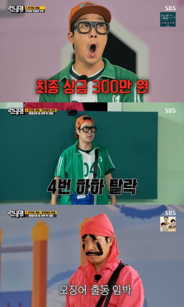 하하는 17일 방송된 SBS '런닝맨'에 출연해 '주꾸미 게임'에 참가했다.