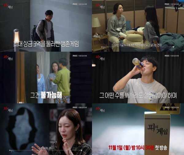 티저 영상만으로도 손에 땀을 쥐게 하는 MBC 새 서바이벌 리얼리티 예능 ‘피의 게임’은 오는 11월 1일 월요일 밤 10시 30분 첫 방송될 예정이며, 국내 최대 규모 온라인 동영상 서비스 플랫폼 웨이브(wavve)에서도 만날 수 있다.