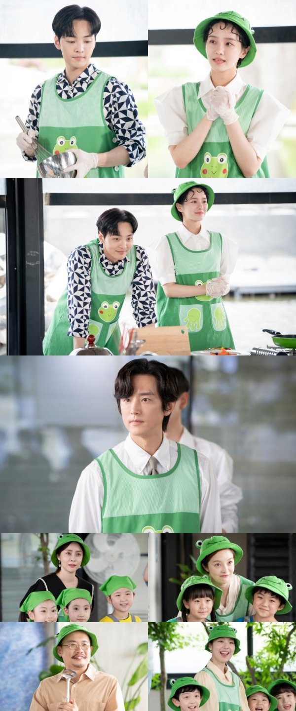 공개된 스틸에는 무학과 달리, 모든 청송 미술관 직원들과 돈돈 F&B 직원들까지 귀엽고 깜찍한 ‘인간 개구리’로 변신해 극강의 귀여움을 자랑하는 모습이 담겨 시선을 강탈한다. 이들이 한자리에 모인 이유는 청송 미술관과 돈돈 F&B가 함께 미술관에서 ‘세 마리 개구리 식당’을 열기 때문이라고.