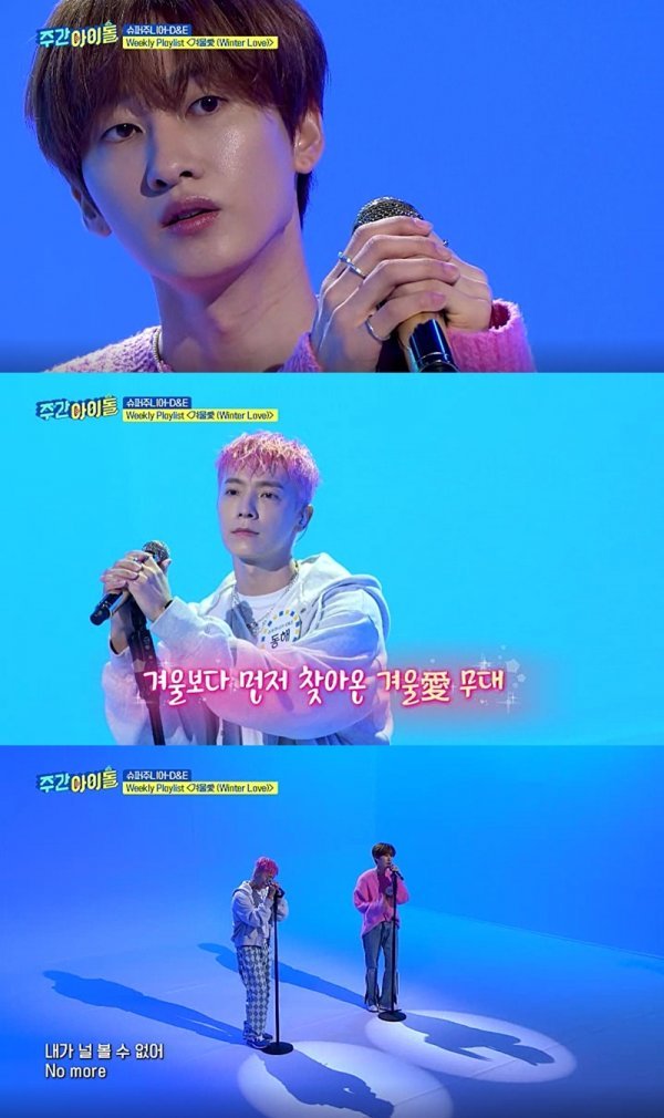 최근 진행된 ‘주간아이돌’ 녹화 중 슈퍼주니어-D&E는 \'Weekly Playlist\' 코너를 통해 ‘겨울愛(Winter Love)’ 완벽 라이브를 선보였다.
