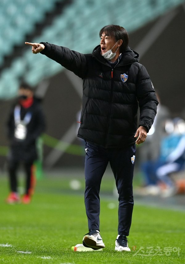 20일 전주월드컵경기장에서 열린 울산과 포항의 2021 아시아축구연맹(AFC) 챔피언스리그(ACL) 4강전에서 울산 홍명보 감독이 작전 지시를 하고 있다.
