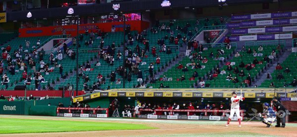 20일 인천 SSG 랜더스필드에서 ‘2021 신한은행 SOL KBO리그’ SSG 랜더스와 NC 다이노스의 경기가 열렸다. 사회적 거리두기 방침에 따라 백신 2차 접종을 완료한 야구팬들이 입장해 경기를 지켜보고 있다.