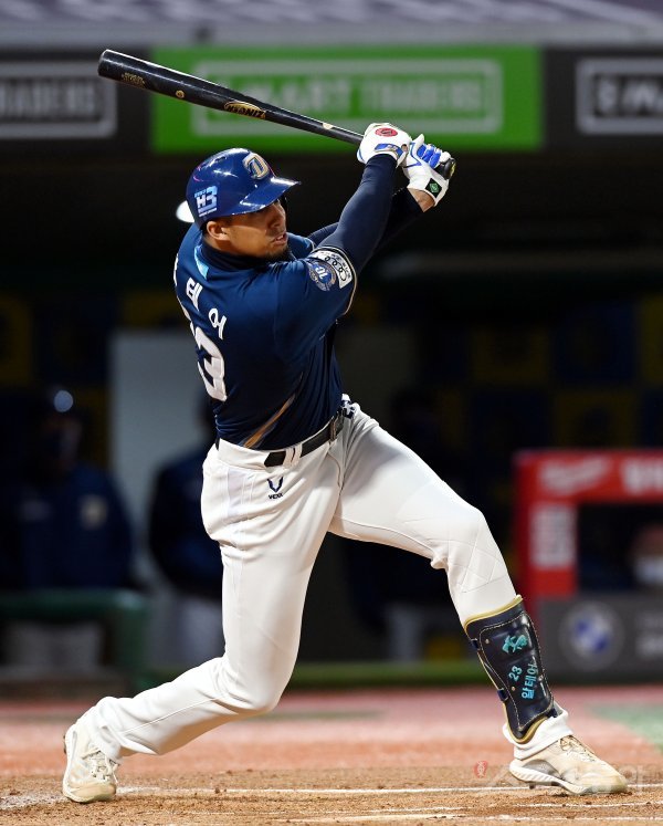 20일 인천 SSG 랜더스필드에서 ‘2021 신한은행 SOL KBO리그’ SSG 랜더스와 NC 다이노스의 경기가 열렸다. 1회초 2사 1, 2루에서 NC 알테어가 1타점 2루타를 날리고 있다.