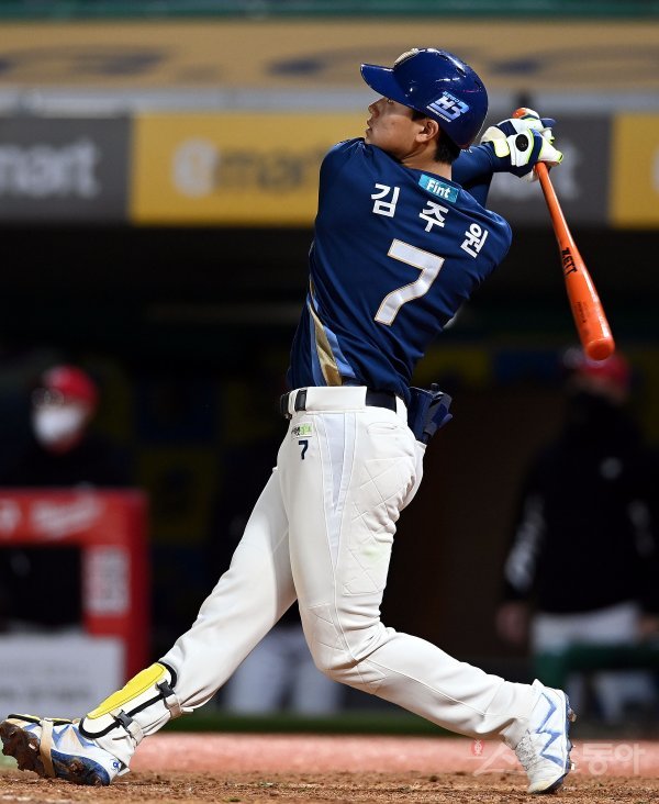 20일 인천 SSG 랜더스필드에서 ‘2021 신한은행 SOL KBO리그’ SSG 랜더스와 NC 다이노스의 경기가 열렸다. 3회초 무사에서 NC 김주원이 솔로 홈런을 쏘아 올리고 있다.