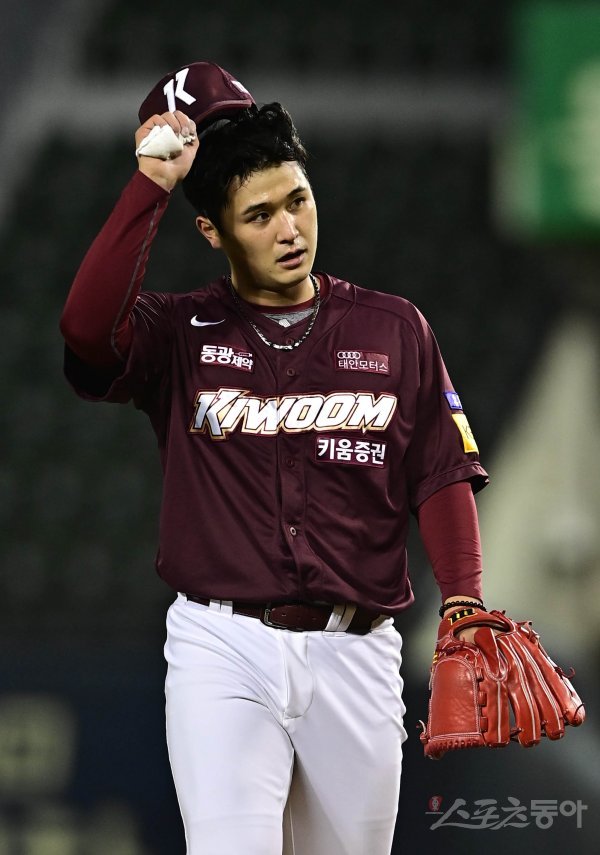 20일 서울 잠실야구장에서 열린 ‘2021 신한은행 SOL KBO리그’에서 LG 트윈스와 키움 히어로즈의 경기에서 5회말 수비를 마친 뒤 키움 최원태가 더그아웃으로 향하고 있다.