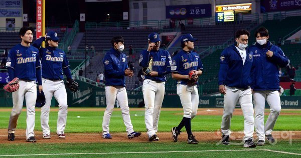 20일 인천 SSG 랜더스필드에서 ‘2021 신한은행 SOL KBO리그’ SSG 랜더스와 NC 다이노스의 경기가 열렸다. NC와 SSG가 7-7 무승부를 기록한 가운데 NC 선수들이 아쉬워하고 있다.