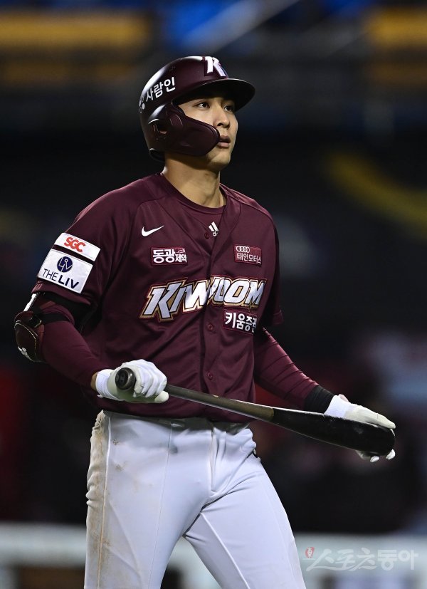 20일 서울 잠실야구장에서 열린 ‘2021 신한은행 SOL KBO리그’에서 LG 트윈스와 키움 히어로즈의 경기에서 9회초 무사 1루 키움 이정후가 삼진 아웃을 당한 뒤 더그아웃으로 향하고 있다.