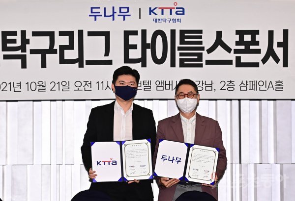 2022년 1월에 막을 올리는 한국프로탁구리그는 디지털 자산 거래소 업비트를 운영하는 ‘두나무’가 초대 타이틀스폰서를 맡았다. 두나무는 2년간 총액 20억 원을 후원하는 조건으로 한국프로탁구리그와 ‘동행’을 선택했다. 이로써 한국프로탁구의 첫 리그 명칭은 ‘2022 두나무 한국프로탁구리그’로 정해졌다.
