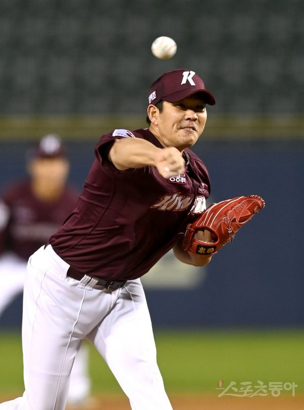 21일 서울 잠실야구장에서 ‘2021 신한은행 SOL KBO리그’ 키움 히어로즈와 LG 트윈스 경기가 열렸다. 선발 투수로 등판한 키움 정찬헌이 역투하고 있다.