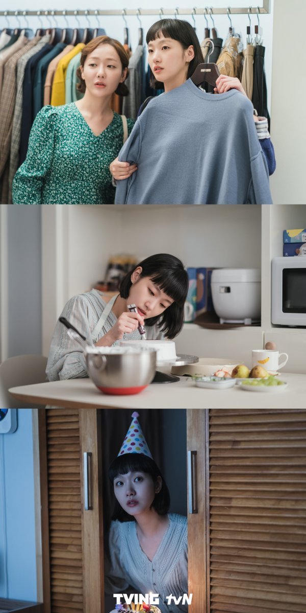 이날 공개된 사진 속 구웅의 파티를 준비하는 유미의 얼굴엔 설렘이 가득하다. 이다(미람 분)와 함께 생일선물을 고심하고, 애정 듬뿍 담긴 케이크를 손수 만드는 유미. 기대에 찬 눈빛에서 구웅을 생각하는 유미의 달콤한 마음이 느껴진다. 서프라이즈 파티를 위해 만반의 준비를 마친 유미는 옷장에 숨어 구웅을 기다리고 있다. 고개만 빼꼼 내민 유미의 모습이 흥미진진하다. 과연 유미의 이벤트는 성공리에 막을 내릴지 궁금해진다.